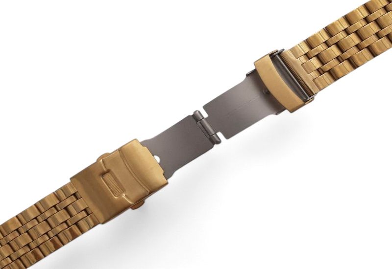 Металлический браслет для часов желтого цвета — стильный и надежный аксессуар, который подойдет как для мужских, так и для женских моделей. Изготовлен из прочной нержавеющей стали с износостойким PVD–напылением, сохраняющим яркий цвет и привлекательный внешний вид даже при ежедневной носке.