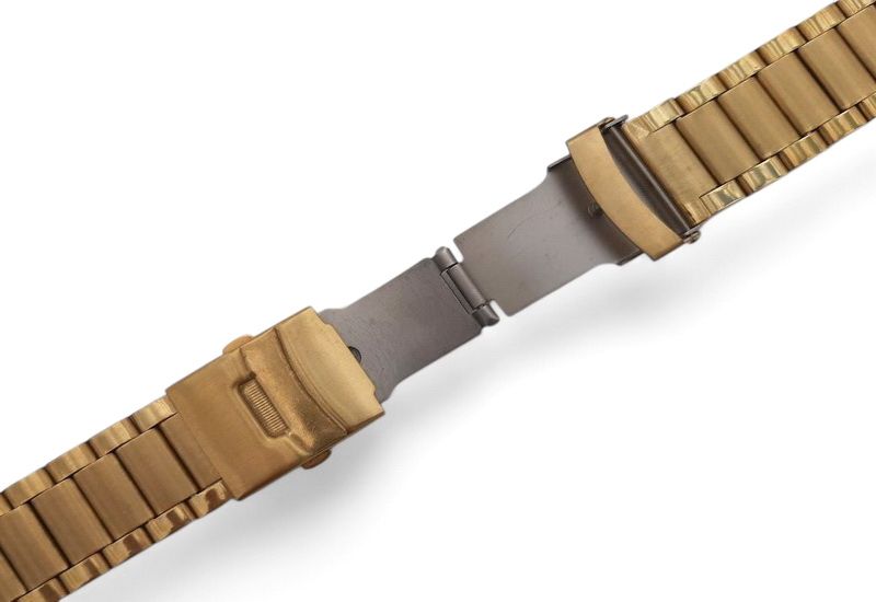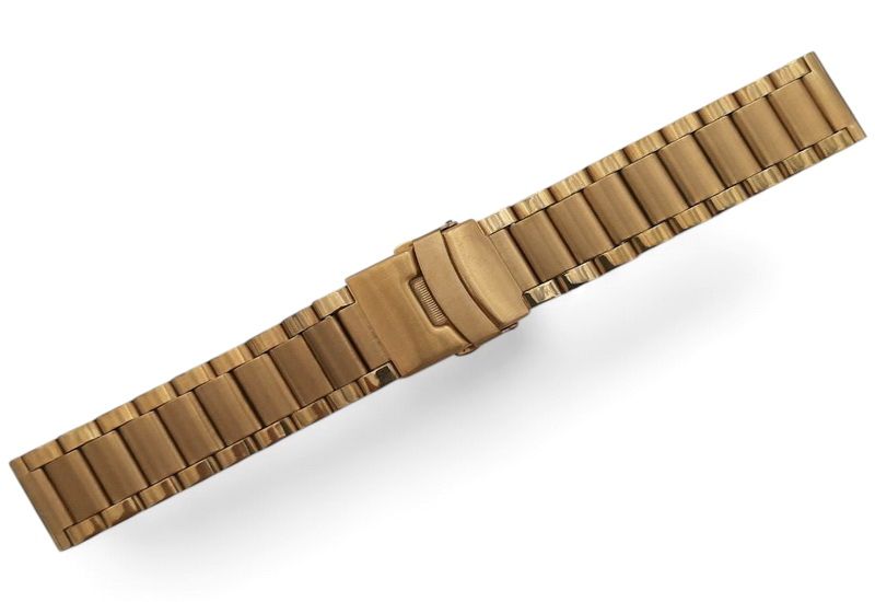 Металлический браслет для часов желтого цвета — стильный и надежный аксессуар, который подойдет как для мужских, так и для женских моделей. Изготовлен из прочной нержавеющей стали с износостойким PVD–напылением, сохраняющим яркий цвет и привлекательный внешний вид даже при ежедневной носке.