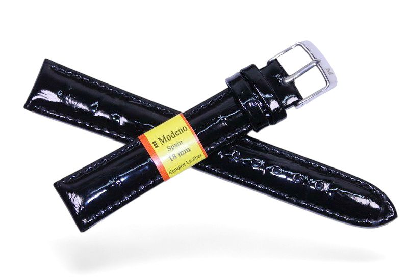 Кожаный ремешок MODENO Spaine лаковый для наручных часов из натуральной кожи и классической стальной застежкой.- Длина частей ремня: 80 мм - 120 мм