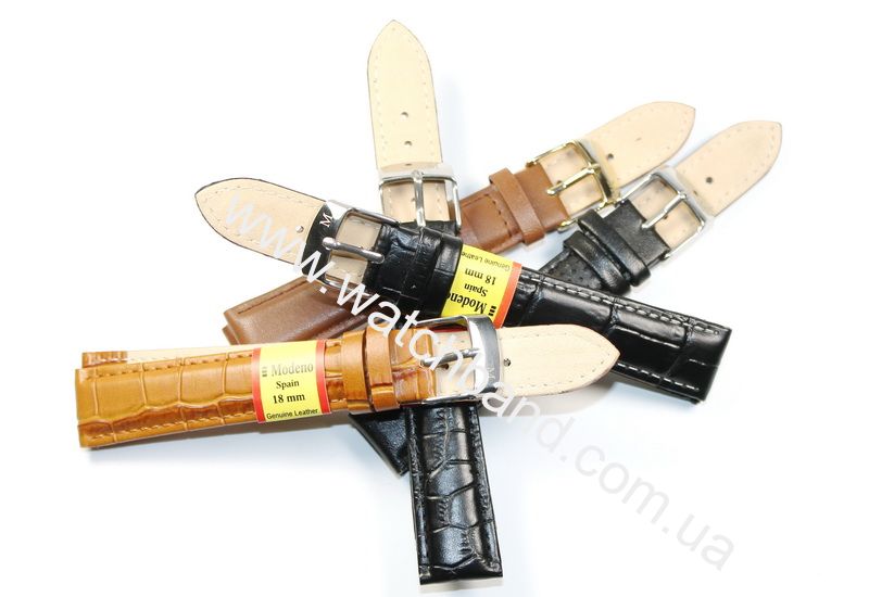 Кожаный ремешок MODENO Spaine для наручных часов из натуральной кожи и классической стальной застежкой.