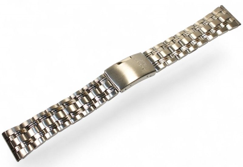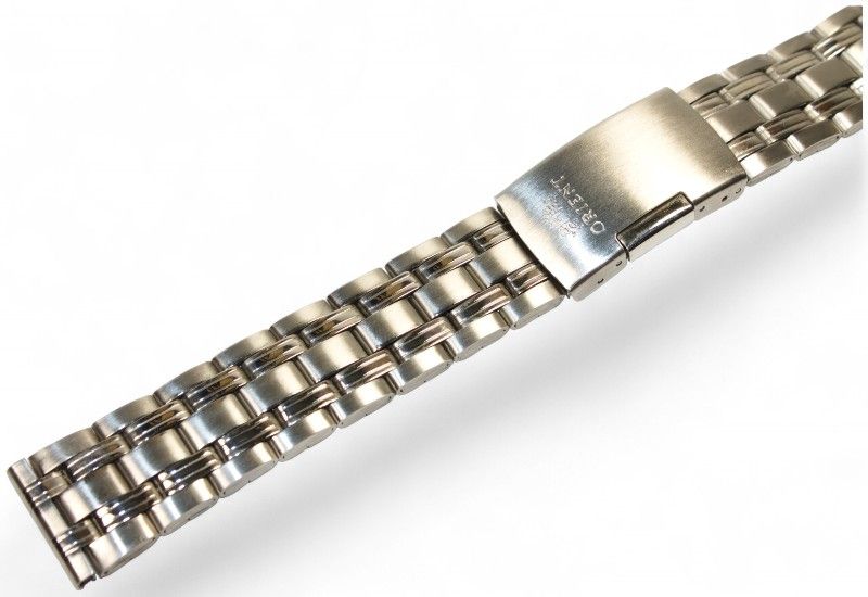 Металлический браслет длиной 185 мм предназначен для часов моделей Orient и оснащён автоматическим замком с боковой кнопкой для надёжной фиксации на запястье. Конструкция браслета позволяет легко регулировать длину с помощью съемных звеньев, обеспечивая идеальную посадку на любые запястья.