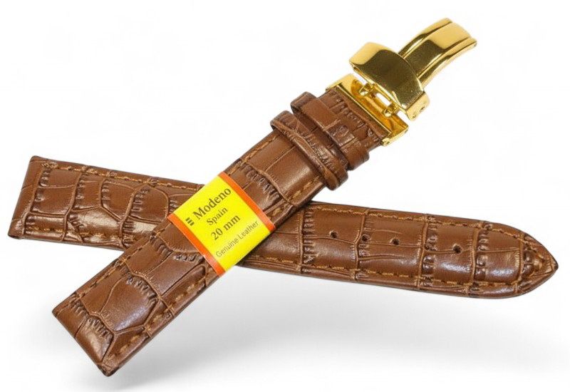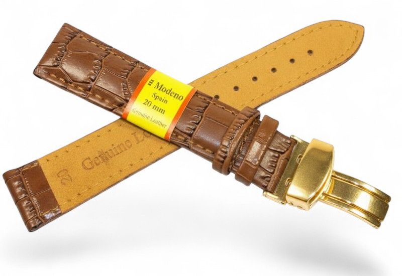Кожаный ремешок Modeno Spain — практичный и стильный аксессуар для наручных часов, изготовленный из натуральной кожи высокого качества. Ремешки серии MODENO оснащены надежной стальной застежкой-клипсой (замок-бабочка) с износостойким покрытием, устойчивым к царапинам и ежедневному использованию.