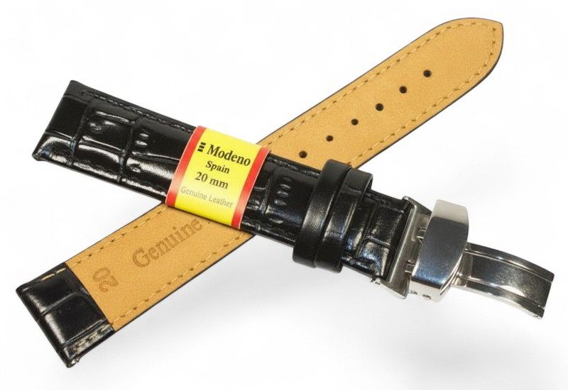 Кожаный ремешок Modeno Spain — практичный и стильный аксессуар для наручных часов, изготовленный из натуральной кожи высокого качества. Ремешки серии MODENO оснащены надежной стальной застежкой-клипсой (замок-бабочка) с износостойким покрытием, устойчивым к царапинам и ежедневному использованию.