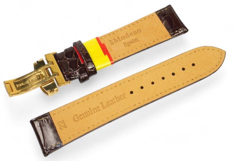 Кожаный ремешок Modeno Spain — практичный и стильный аксессуар для наручных часов, изготовленный из натуральной кожи высокого качества. Ремешки серии MODENO оснащены надежной стальной застежкой-клипсой (замок-бабочка) с износостойким покрытием, устойчивым к царапинам и ежедневному использованию.