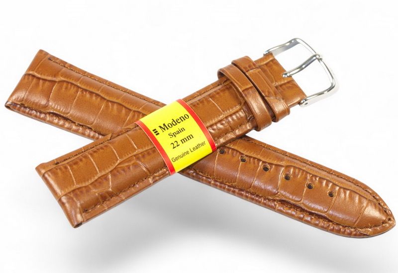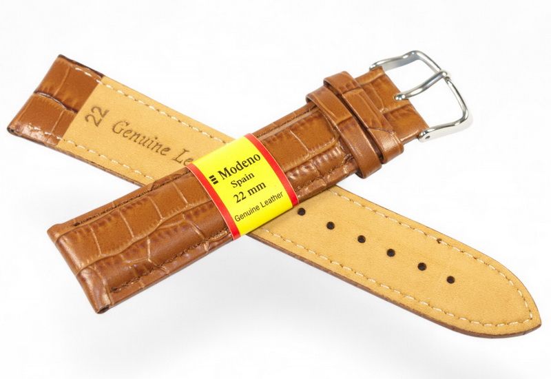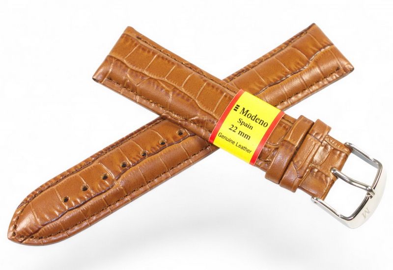 Кожаный ремешок MODENO Spaine для наручных часов из натуральной кожи и классической стальной застежкой.