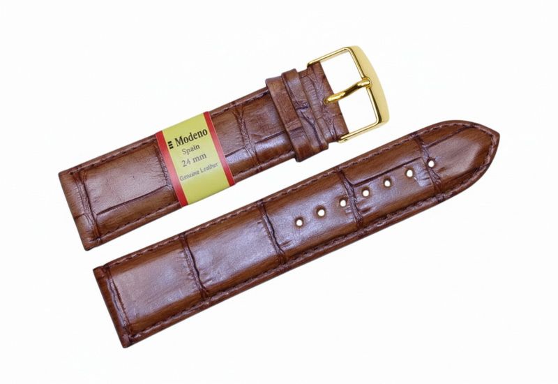Кожаный ремешок MODENO Spaine для наручных часов из натуральной кожи и классической стальной застежкой.