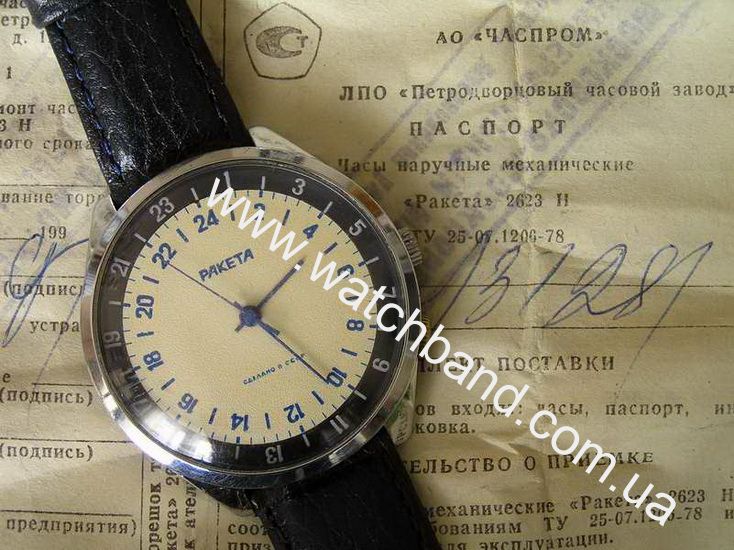 🕰️ Годинники "Ракета 24 години" були створені на Петродворцовому годинниковому заводі в часи СРСР. Вони вперше з’явилися у 1960–1970-х роках і були розроблені спеціально для полярників, підводників та космонавтів — людей, які працюють у середовищі, де складно визначити час доби за положенням Сонця.