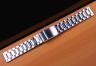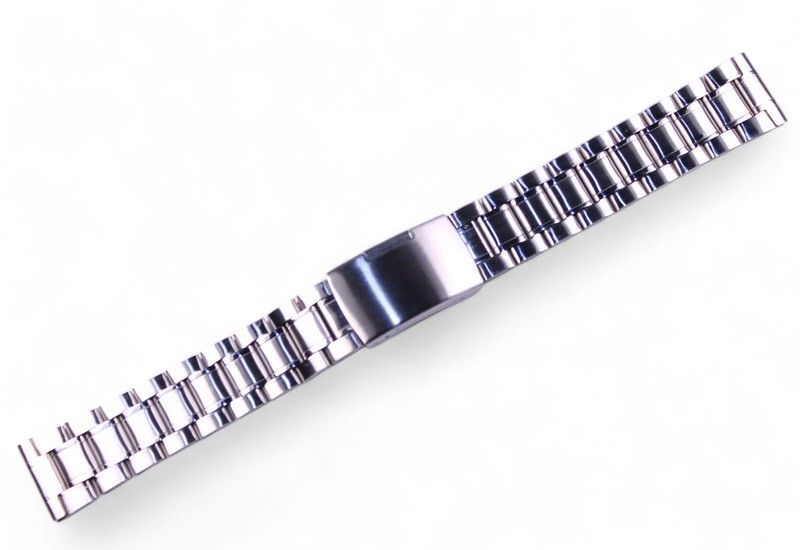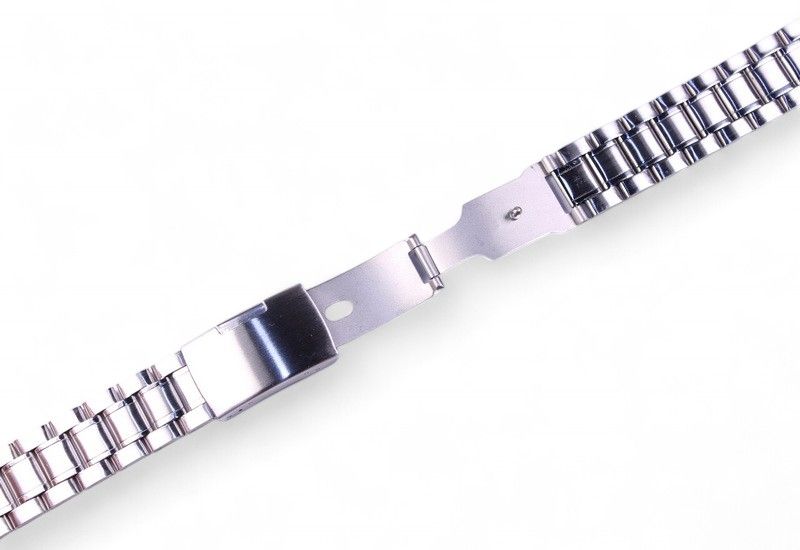 Оснащён надежной застежкой с боковой кнопкой и регулируемой длиной за счёт съемных звеньев. Идеален для классических и спортивных часов.