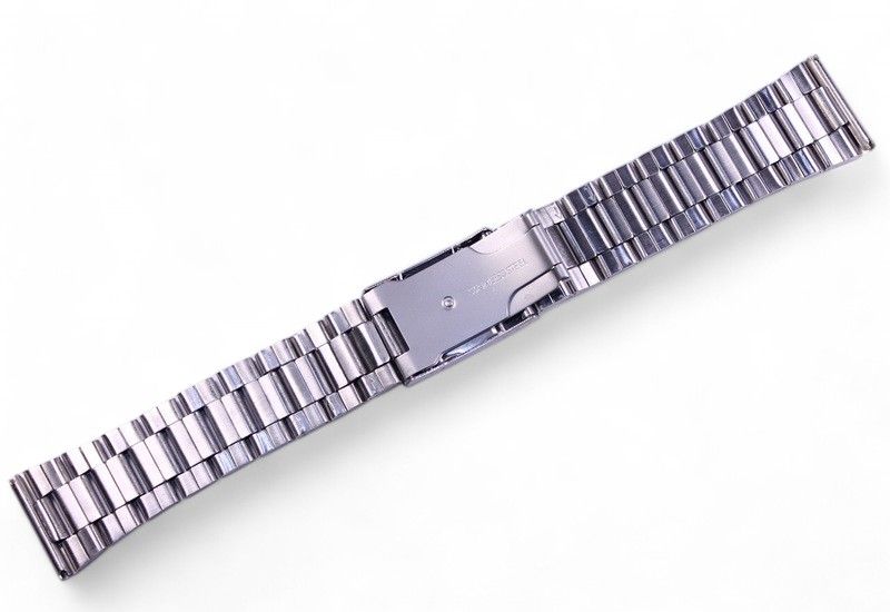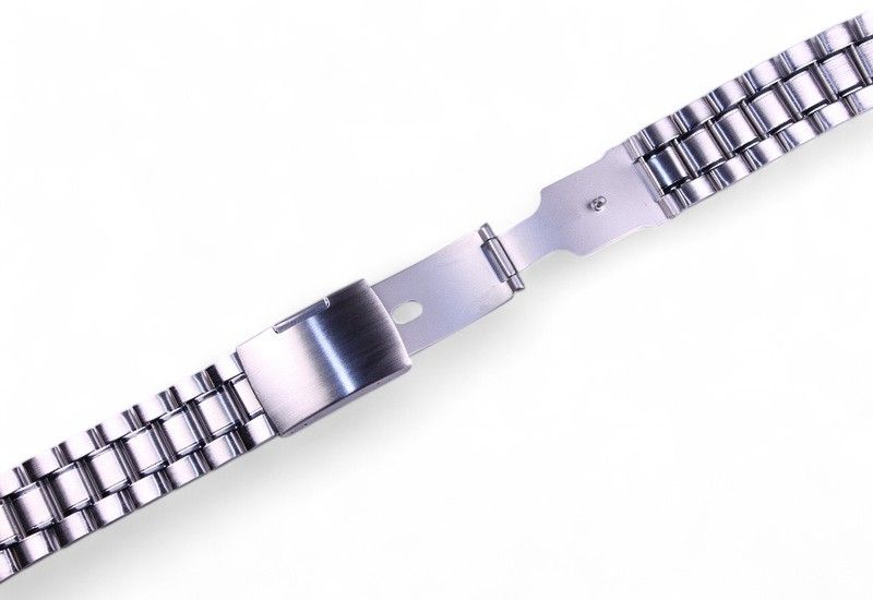 Оснащён надежной застежкой с боковой кнопкой и регулируемой длиной за счёт съемных звеньев. Идеален для классических и спортивных часов.