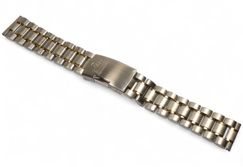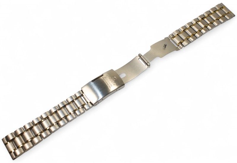 Стальной браслет для наручных часов Omega шириной 20 мм, комбинированным PVD‑покрытием желтого цвета.Надежный и стильный аксессуар, который подчеркнет элегантность ваших часов. Изготовлен из нержавеющей стали с литыми звеньями и удобным замком-автоматом с боковой кнопкой для надежной фиксации.
