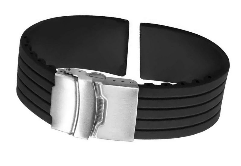 Каучуковые ремешки часто используются на водонепроницаемых часах и имеют существенное преимущество в эксплуатации перед кожаными ремешками, так как не боятся воды, не требуют частой замены, легко моются от грязи и очень износостойкие.