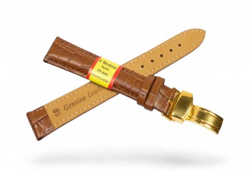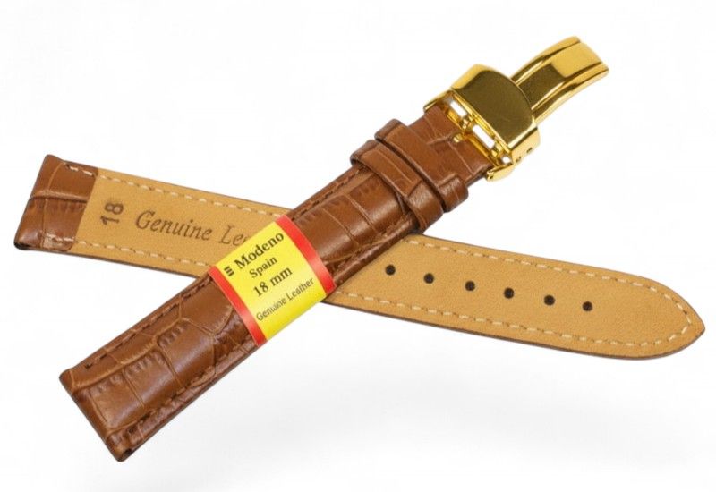 Кожаный ремешок Modeno Spain — практичный и стильный аксессуар для наручных часов, изготовленный из натуральной кожи высокого качества. Ремешки серии MODENO оснащены надежной стальной застежкой-клипсой (замок-бабочка) с износостойким покрытием, устойчивым к царапинам и ежедневному использованию.