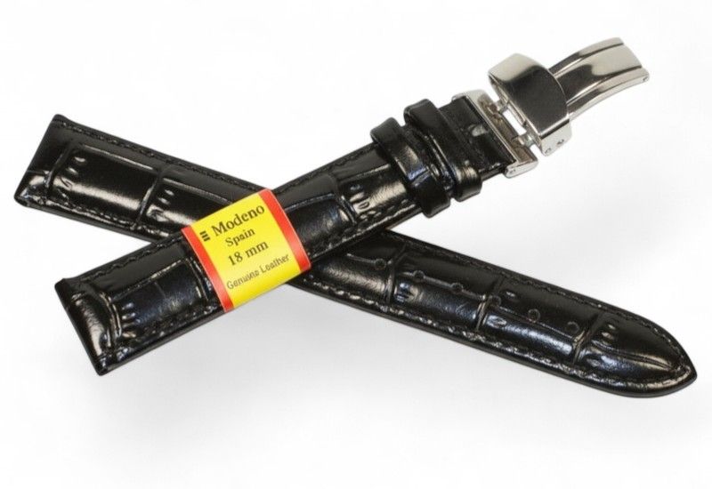 Кожаный ремешок Modeno Spain черный 18 мм, застежка-клипса.