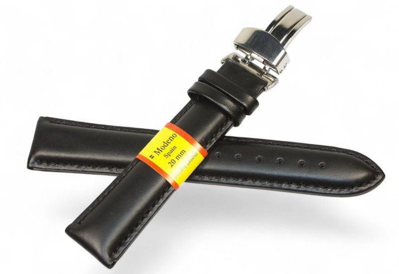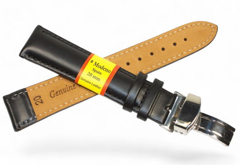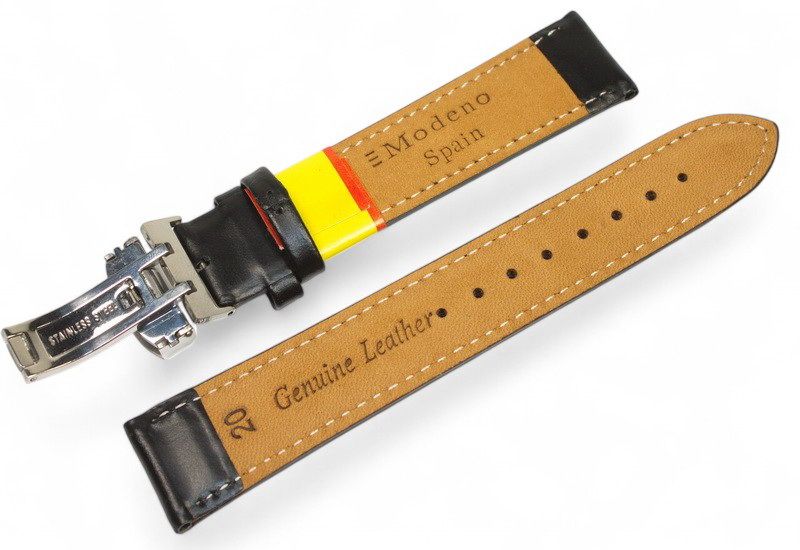 Кожаный ремешок Modeno Spain черный 20 мм, застежка-клипса.