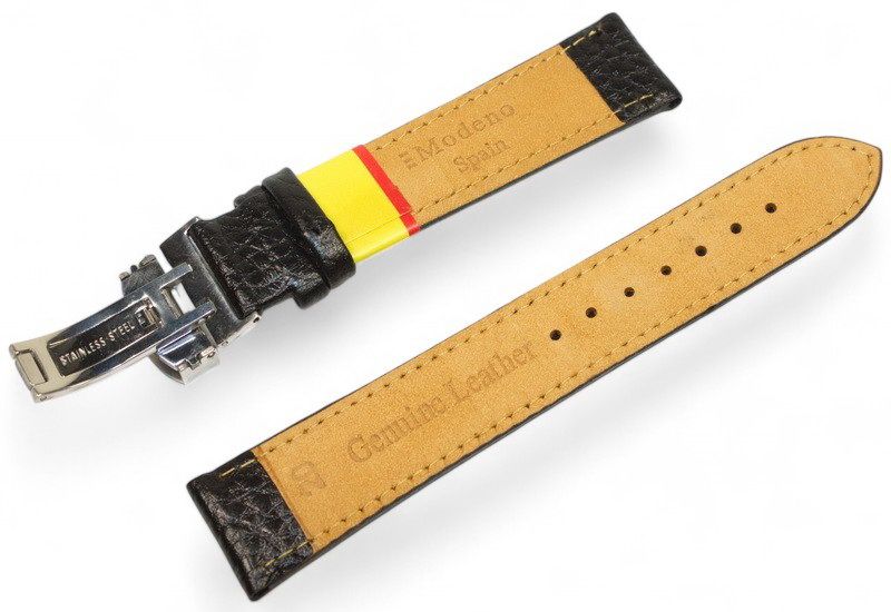 Кожаный ремешок Modeno Spain — практичный и стильный аксессуар для наручных часов, изготовленный из натуральной кожи высокого качества. Ремешки серии MODENO оснащены надежной стальной застежкой-клипсой (замок-бабочка) с износостойким покрытием, устойчивым к царапинам и ежедневному использованию.