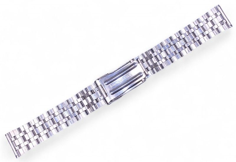 Удлинённый металлический браслет для наручных часов, выполненный из нержавеющей стали. Универсальный аксессуар подходит как для мужских, так и для женских моделей часов соответствующего размера часов.