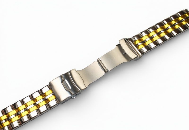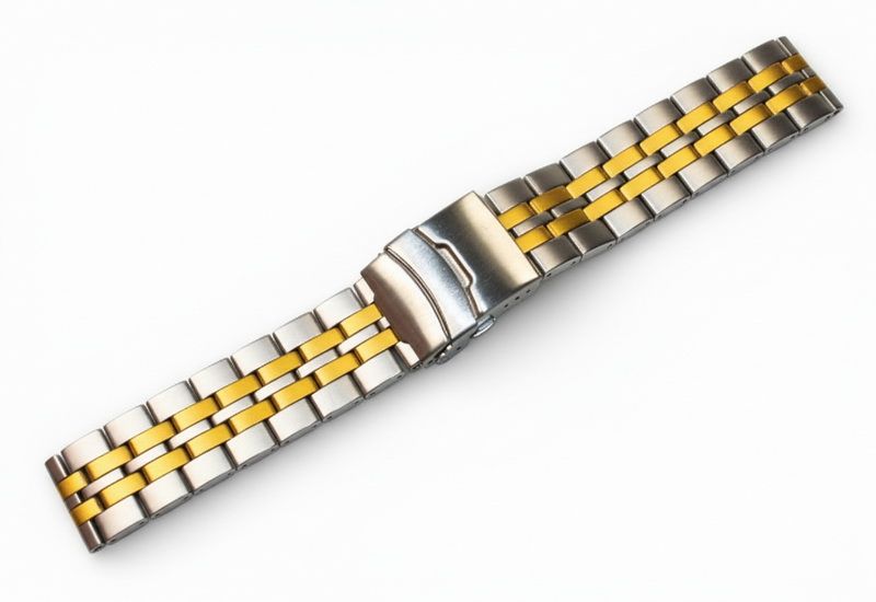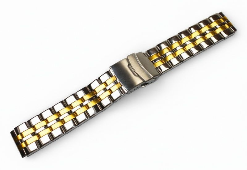 Элегантный металлический браслет для наручных часов шириной крепления 20 мм — стильная и практичная замена стандартному ремешку. Модель выполнена из высококачественной нержавеющей стали с комбинированным дизайном: классическая стальная основа дополнена жёлтыми полосами с PVD-покрытием (Physical Vapor Deposition), нанесёнными вдоль звеньев.