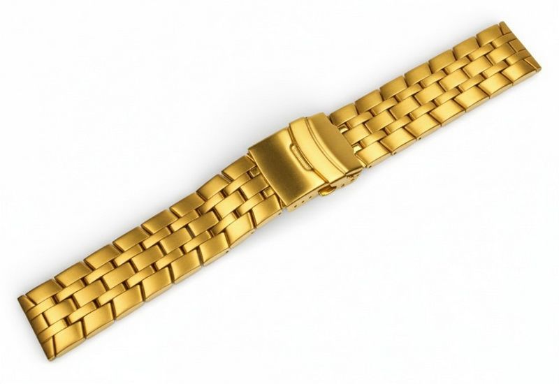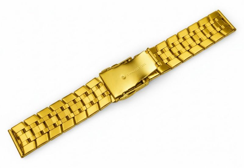 Стильный металлический браслет для наручных часов шириной крепления 22 мм — надёжная и эффектная замена стандартному ремешку. Модель выполнена из высококачественной нержавеющей стали с износостойким PVD-покрытием (Physical Vapor Deposition) жёлтого цвета, которое обеспечивает стойкость к истиранию и сохраняет насыщенный оттенок даже при ежедневной носке.
